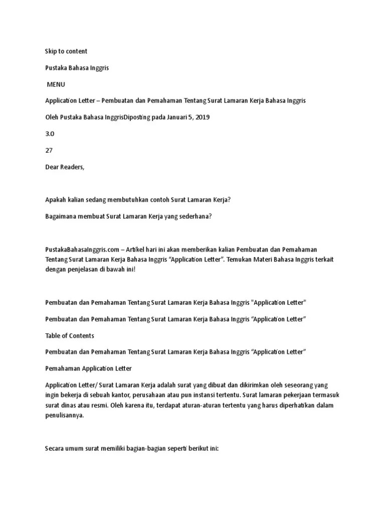Lamaran kerja contoh cover letter bahasa indonesia.